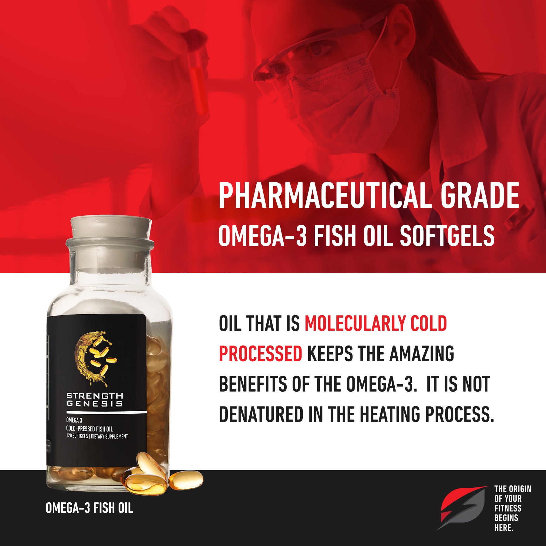 Strength Genesis is pleased to offer a high-quality, effective molecularly cold-processed fish oil supplement rich in omega-3 fatty acids.